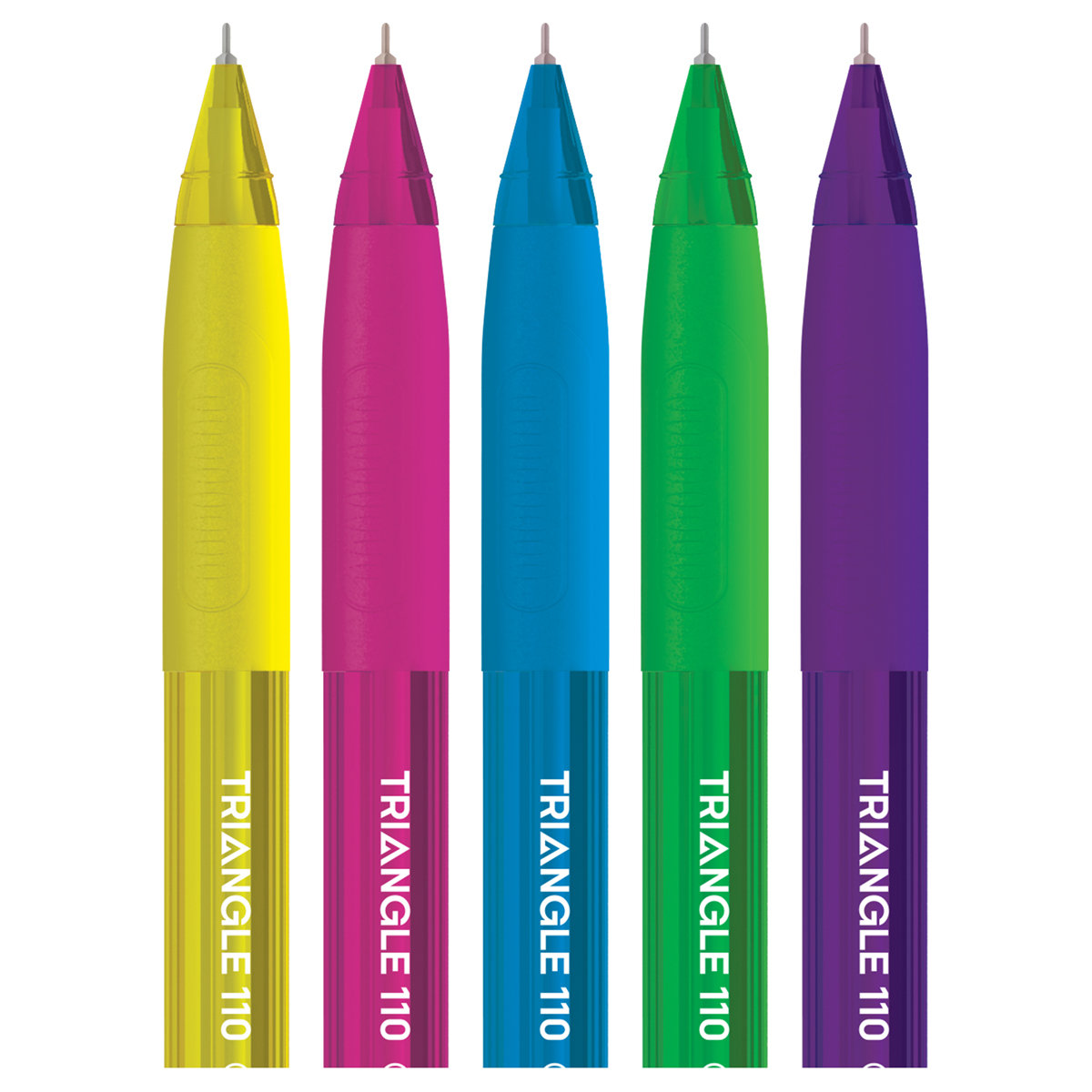 Ручка шариковая автоматическая синяя "Triangle 110 RT Color" трехгранная. Технология Smart Ink обеспечиваeт супермягкое письмо. Кнопочная подача стержня. Удобный корпус трёхгранной формы. Резиновый грип, мягкая зона захвата.