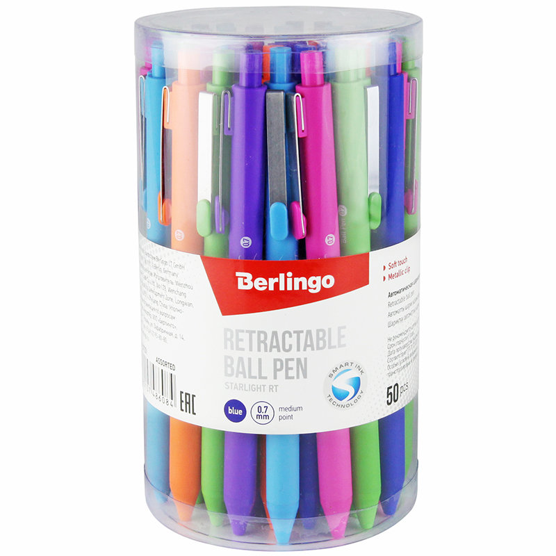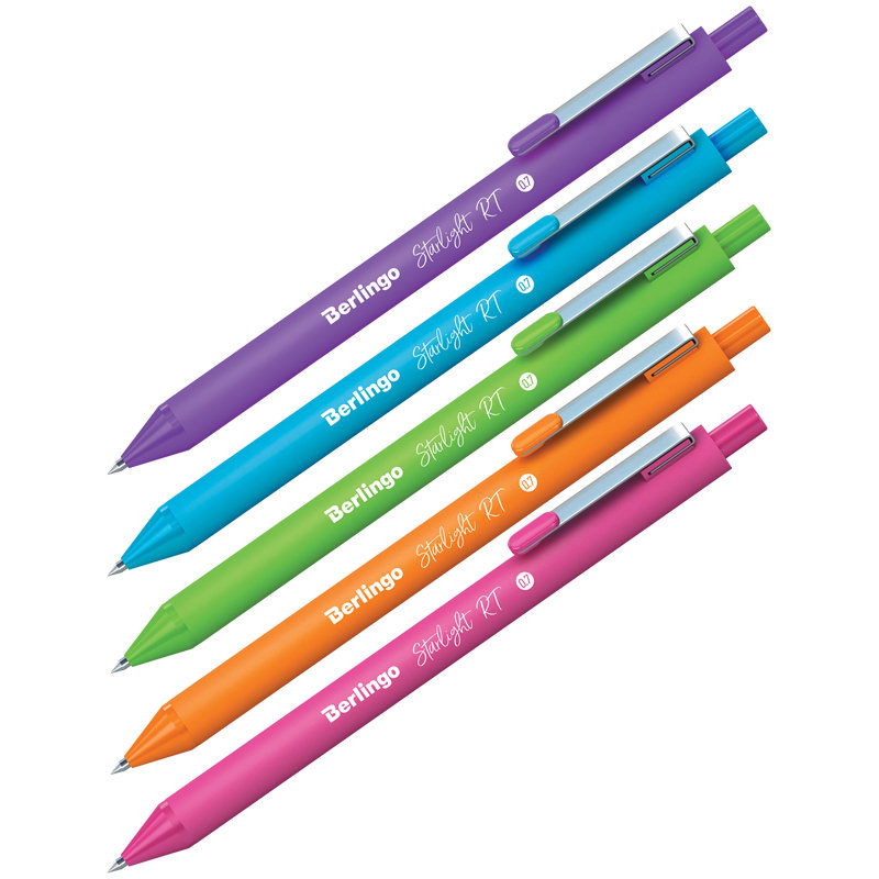 Ручка шариковая автоматическая Berlingo Starlight RT украсит любой рабочий стол и поможет создать отличное настроение. Бархатистое покрытие корпуса Soft touch создаёт особый комфорт при использовании ручки. Ручка оснащена надёжным металлическим клипом, который позволит зафиксировать ручку на кармане одежды или ежедневнике. Диаметр пишущего узла составляет 0,7 мм, благодаря чему ручка прекрасно подходит для любого стиля письма.