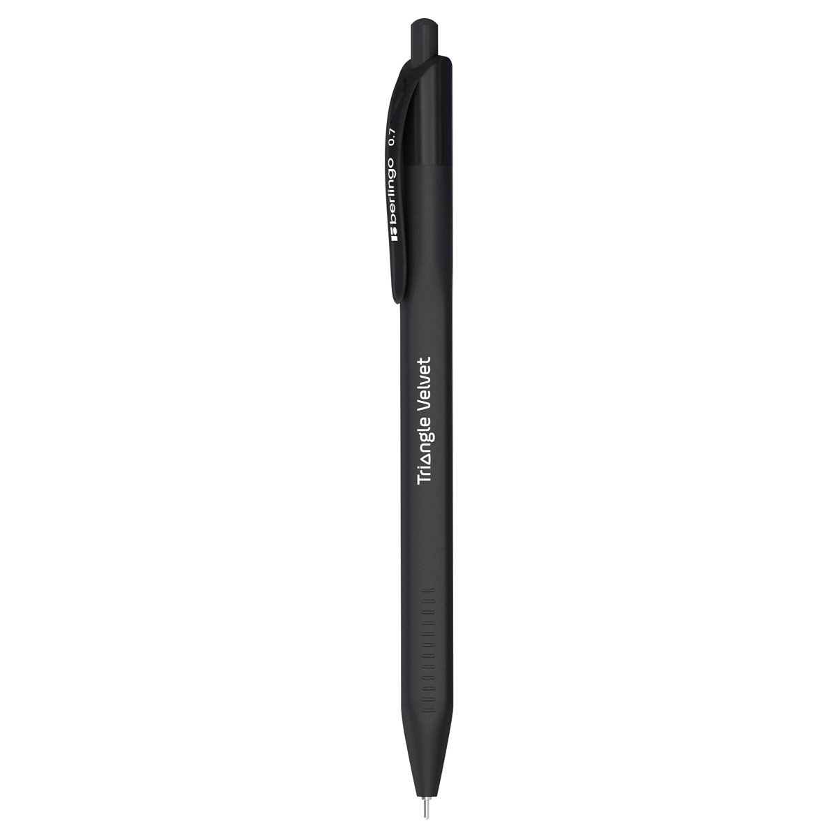Стильная одноразовая автоматическая шариковая ручка Berlingo Triangle Velvet с пластиковым клипом представлена в корпусе эргономичной трёхгранной формы. Такая ручка может эффектно дополнить образ ценителей total black. Приятное бархатистое покрытие корпуса Soft touch и рифление в зоне захвата создают комфорт при письме. Кнопочная подача стержня обеспечивает дополнительное удобство при работе с ручкой. Диаметр пишущего узла составляет 0,7 мм, благодаря чему ручка прекрасно подходит для любого стиля письма. Толщина линии письма составляет 0,5 мм, длина линии письма – 820 метров.