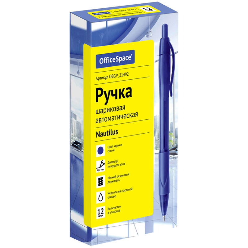 Шариковая ручка OfficeSpace Nautilus – отличный инструмент для ежедневного использования. Внутри пластикового корпуса – синие чернила на масляной основ, которые обеспечивают мягкое письмо. Клип помогает закрепить ручку на одежде или ежедневнике. На зоне хвата располагается резиновый грип для препятствия выскальзыванию из рук. Благодаря диаметру пишущего узла 0,7 мм подходит для любого стиля письма.