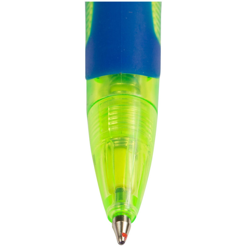 Автоматическая шариковая ручка со стандартным типом пишущего узла и заменяемым стержнем. Ручка имеет круглый полупрозрачный корпус ярких неоновых цветов с эргономичной комбинированной грип-зоной из резины и профилированного пластика. 5-канальный пишущий узел с диаметром шарика 0.7 мм в сочетании с быстросохнущими чернилами обеспечивает мягкое и быстрое письмо. Длина непрерывной линии составляет 1000 м при толщине 0.35 мм, что является высоким показателем в своей категории.