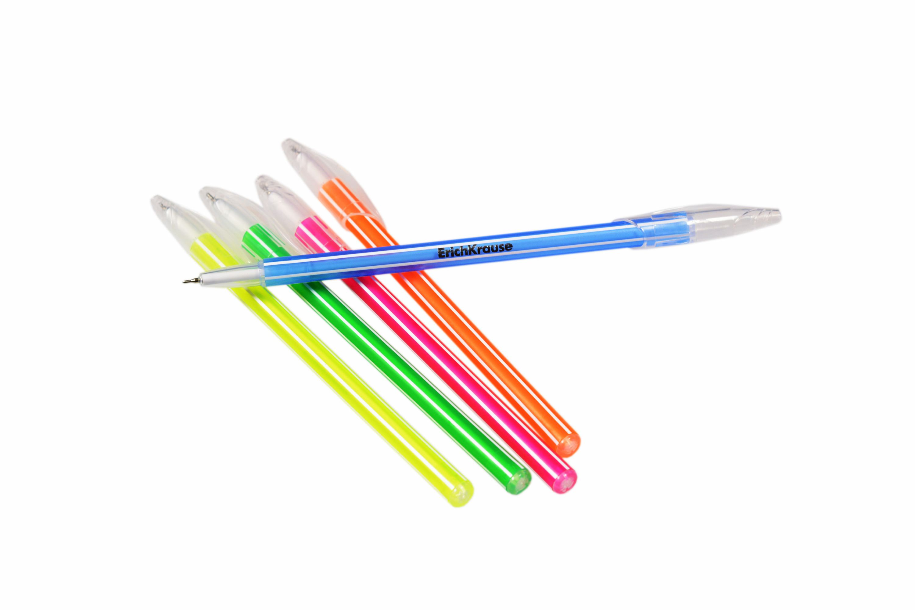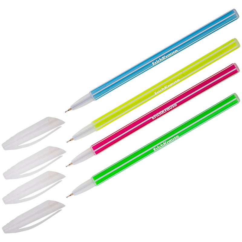 Шариковая ручка "Erich Krause" Cocktail с яркими полосками на корпусе. Прозрачный колпачок.