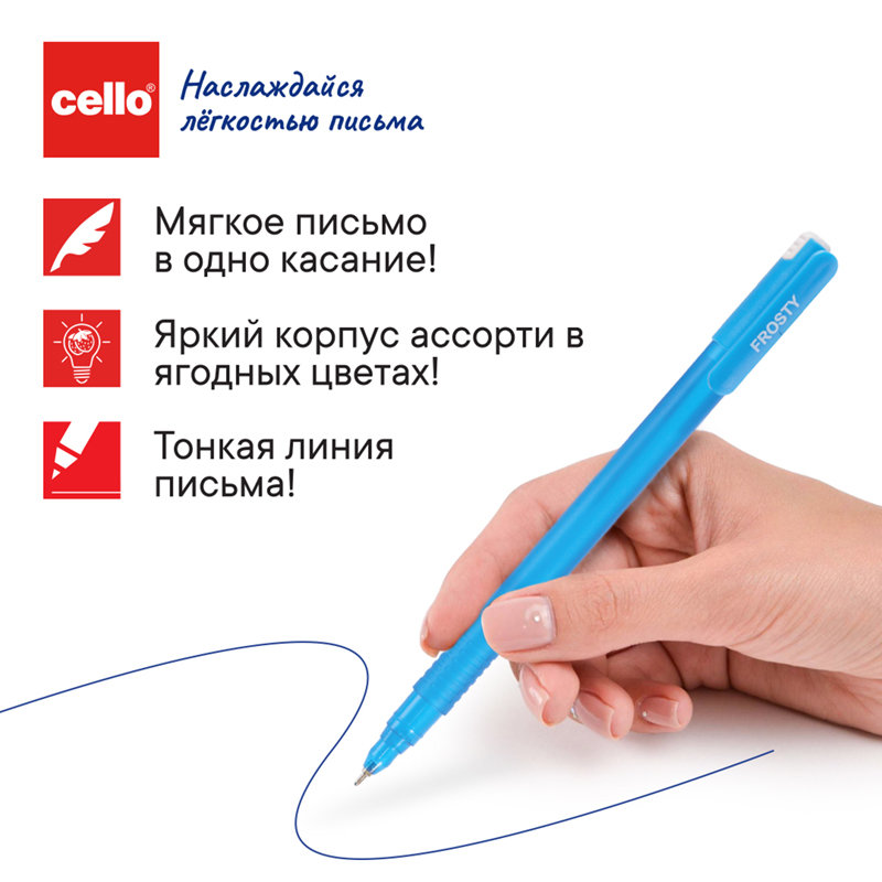 Ручка шариковая синяя "Cello FROSTY" игловидный наконечник.