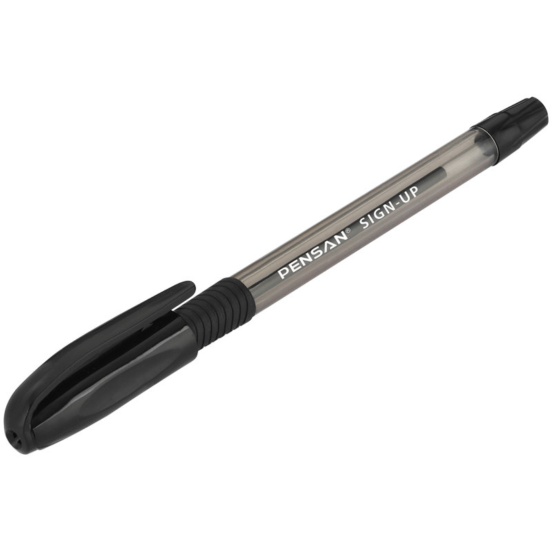 Ручка шариковая из прозрачного пластика . Колпачок, резиновая манжета в цвет пасты.