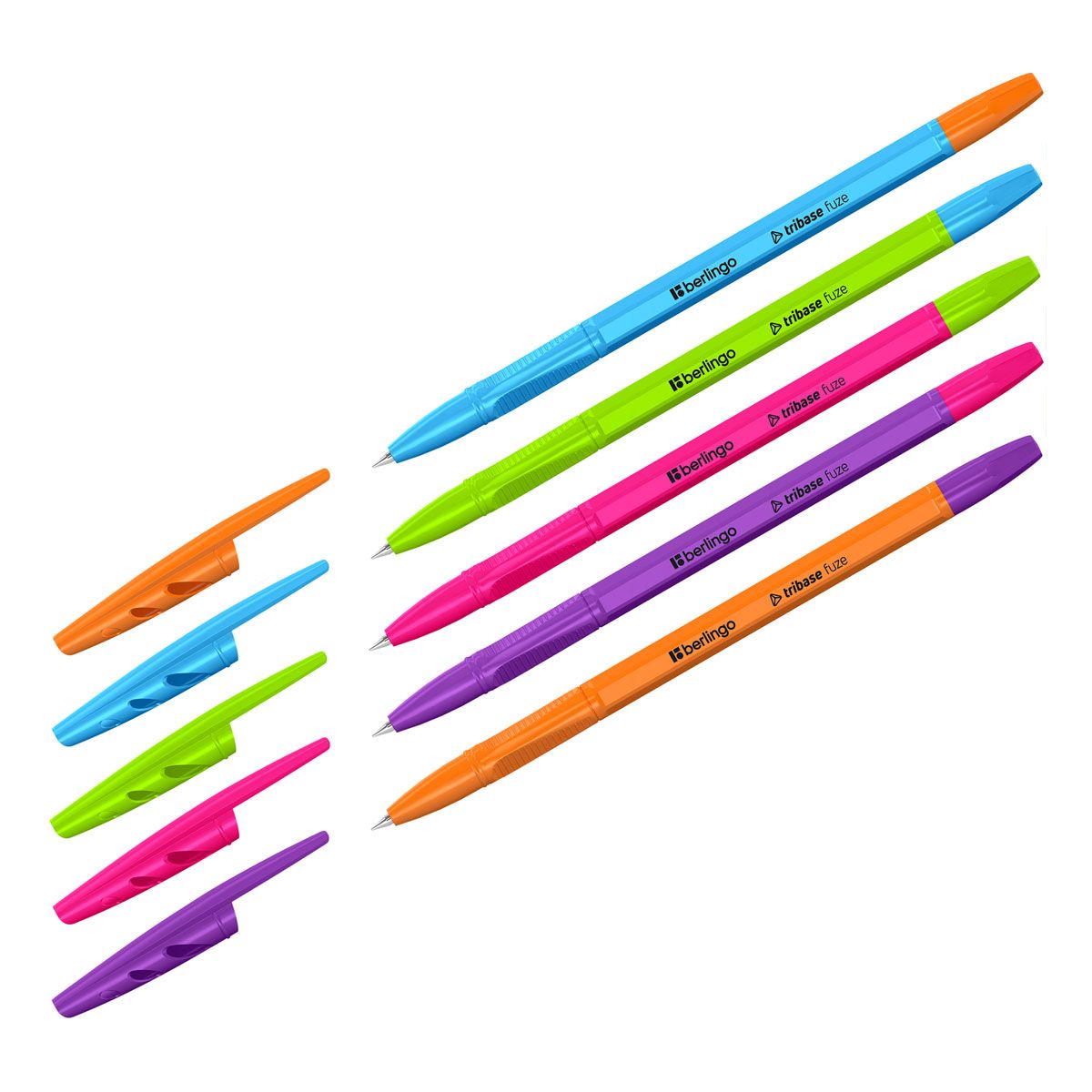Яркая шариковая ручка Berlingo Tribase Fuze с вентилируемым колпачком, который обеспечивает безопасность при использовании детьми, будет по душе тем, кому нравится привлекать к себе внимание. Пластиковый клип позволит разместить ручку где удобно. Ручка выполнена в контрастных цветах концепции Fuze. Удобная трёхгранная зона захвата с рифлением препятствует скольжению пальцев. Качественные чернила обеспечивают чёткое и ровное письмо. Диаметр пишущего узла составляет 0,7 мм, благодаря чему ручка прекрасно подходит для любого стиля письма. Толщина линии письма составляет 0,5 мм, а длина линии письма составляет 1200 метров.