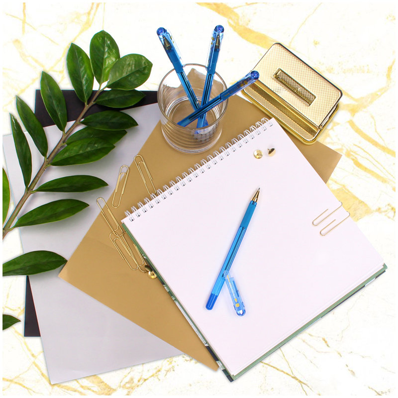 Ручка проработана до мельчайших деталей: тонированный синий шестигранный корпус диаметром 8,3 мм отлично сочетается с золотым наконечником и ребристым противоскользящим грипом под синий цвет чернил. Уникальные чернила на масляной основе обеспечивают мягкое, ровное письмо и уверенное скольжение по бумаге. У ручки MunHwa MC Gold есть возможность менять стержень, она многоразовая. Сочетание комфортного письма и безупречного стильного дизайна сделало её абсолютным лидером российского рынка.