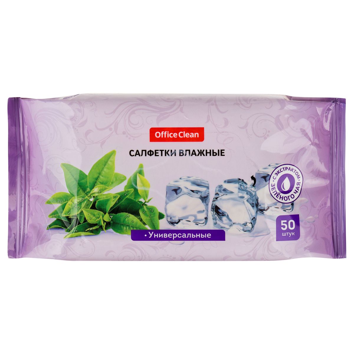 Салфетки влажные OfficeClean 50шт. универсальные очищающие для всей семьи, экстракт зеленого чая/24/