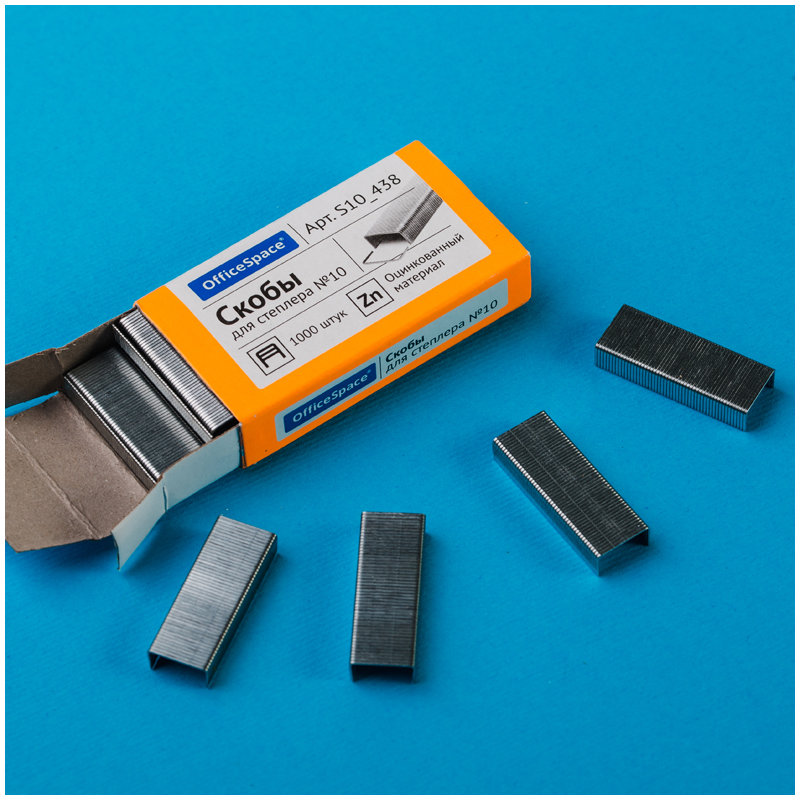 Скобы для степлеров OfficeSpace №10, оцинкованные. Упакованы в картонную упаковку.