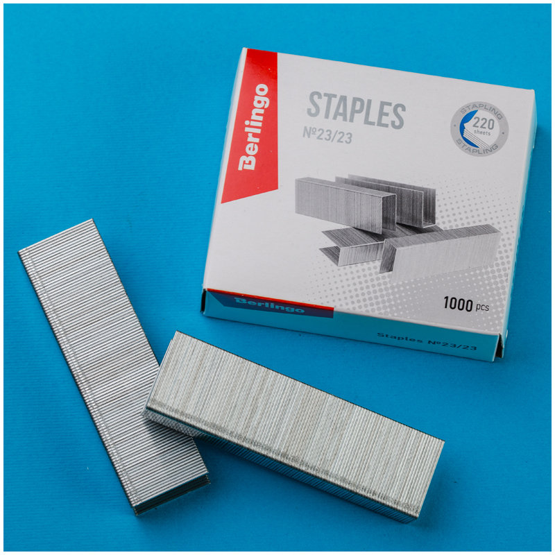 Скобы канцелярские № 23/23 Berlingo оцинкованные отлично подойдут для скрепления листов бумаги.