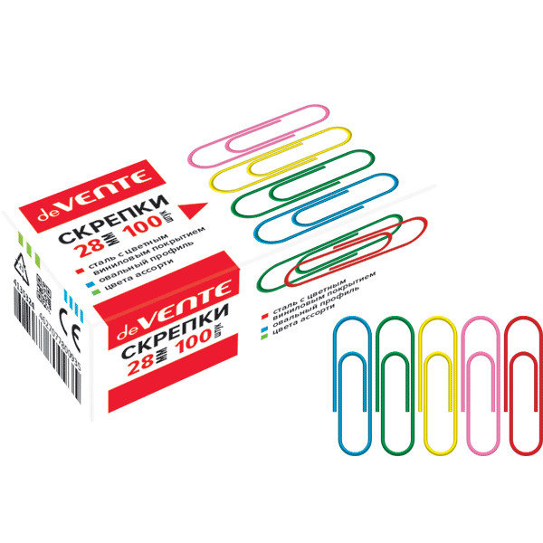 Скрепки металлические "deVENTE" овальные цветные 28 мм, 100 шт в картонной коробке