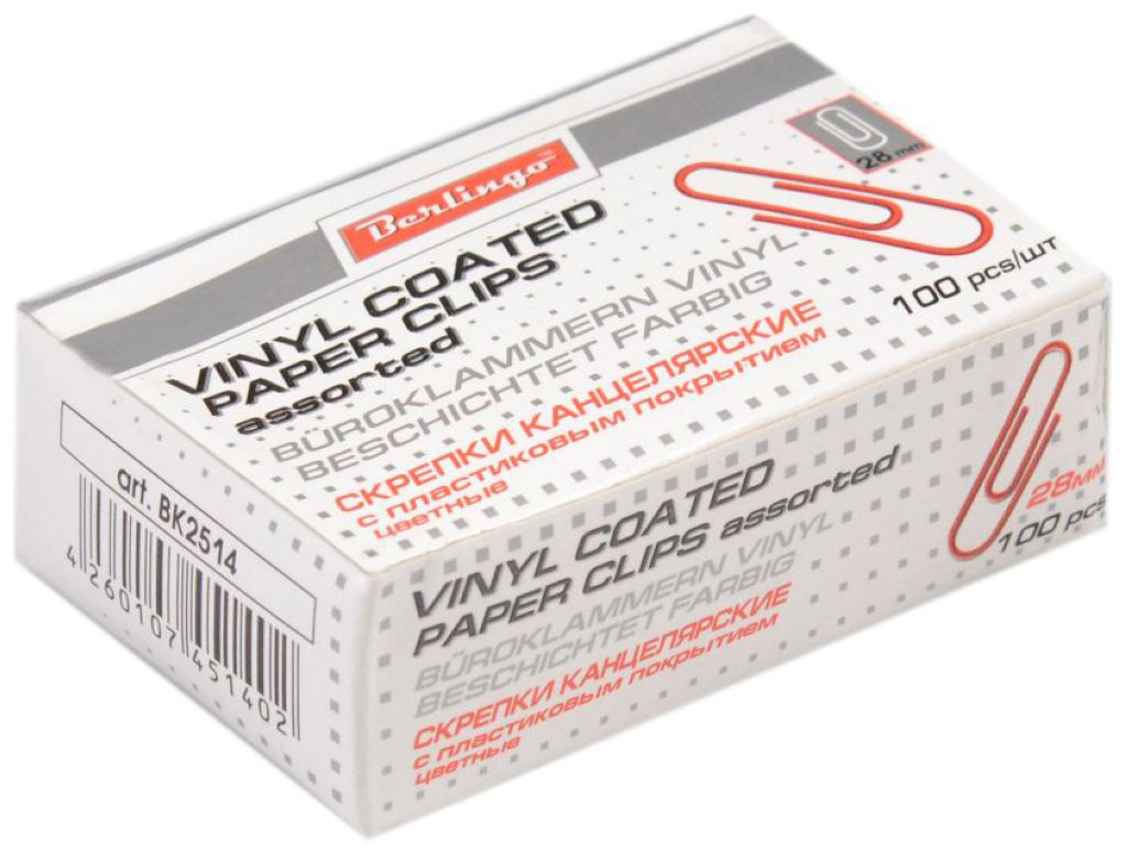 Никелированные канцелярские цветные скрепки "Berlingo" стандартной круглой формы. Не ржавеют, не пачкают бумагу, обеспечивают надежное скрепление.