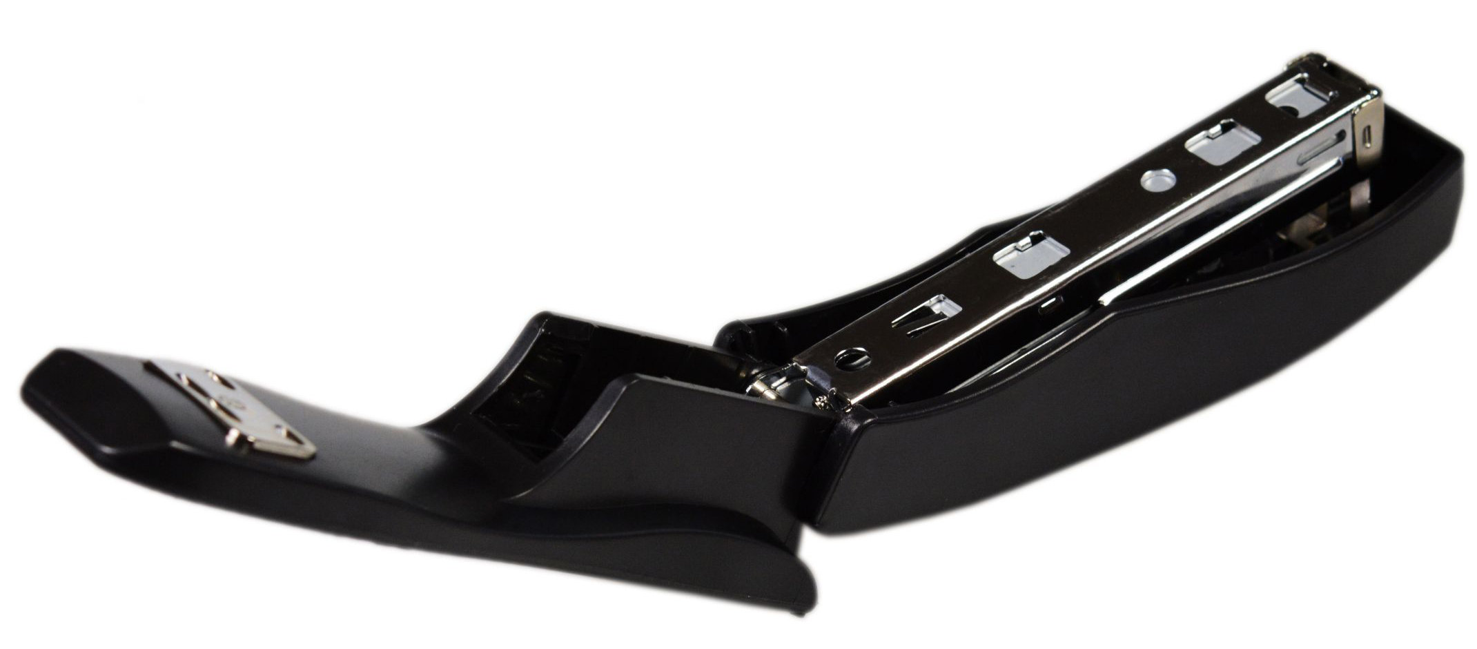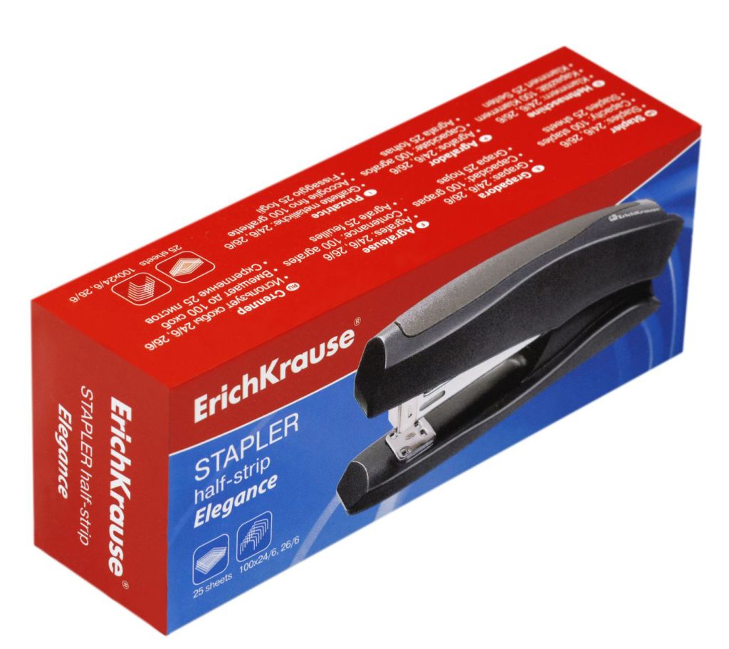 Степлер изготовлен из ударопрочного пластика с высококачественным стальным механизмом. Имеет два режима скрепления: постоянное и временное. На корпусе предусмотрена резиновая противоскользящая вставка. Имеет цельнометаллический механизм подачи скоб. Вмещает до 100 скоб №24/6 и до 140 скоб №26/6. Пробивает до 25 листов. Глубина закладки бумаги до 55 мм.