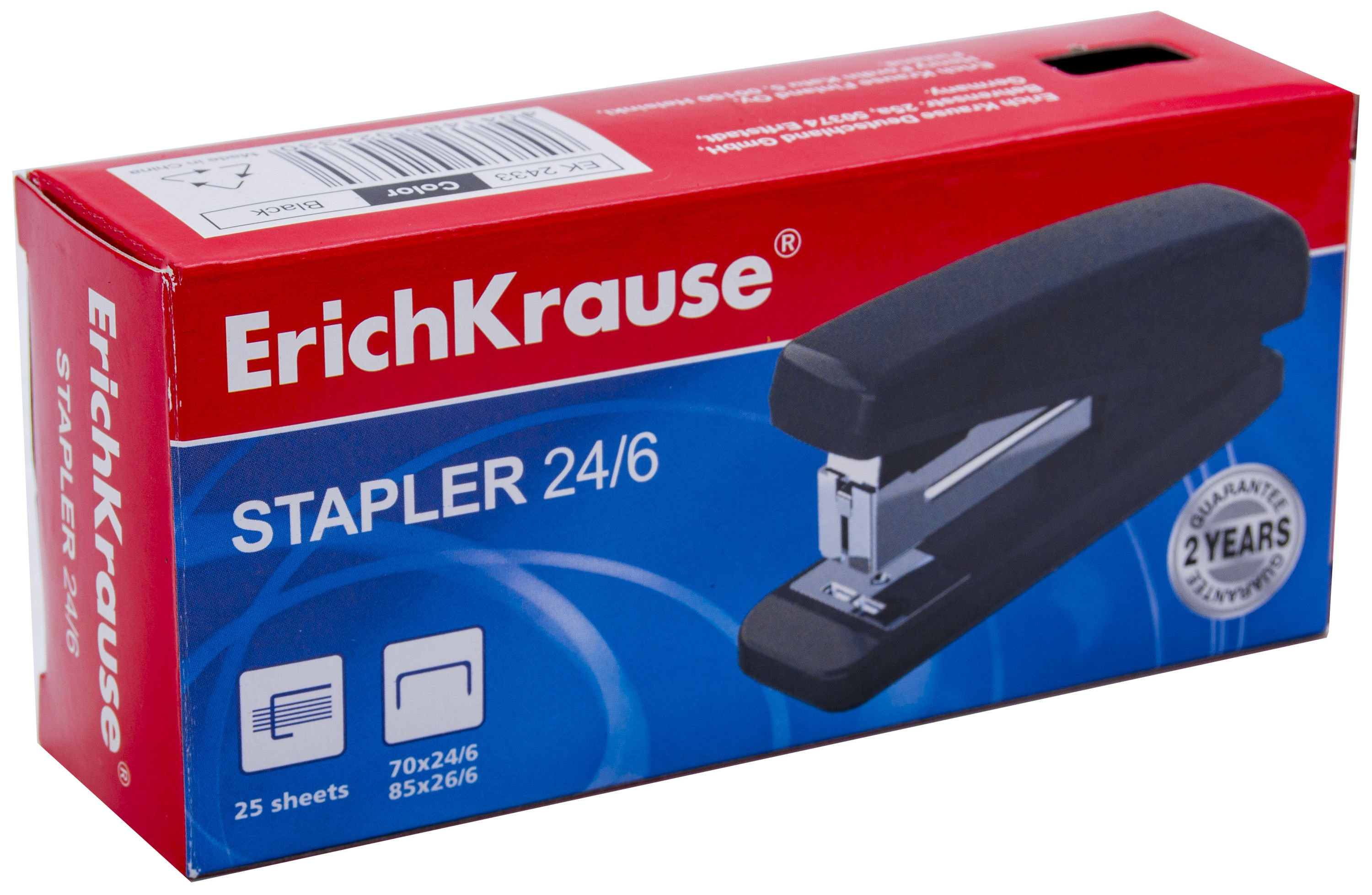 Степлер изготовлен из ударопрочного пластика с высококачественным стальным механизмом. Вмещает до 70 скоб №24/6 и до 85 скоб №26/6. Пробивает до 20 листов. Глубина закладки бумаги до 55 мм.