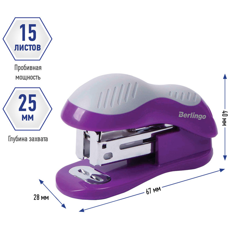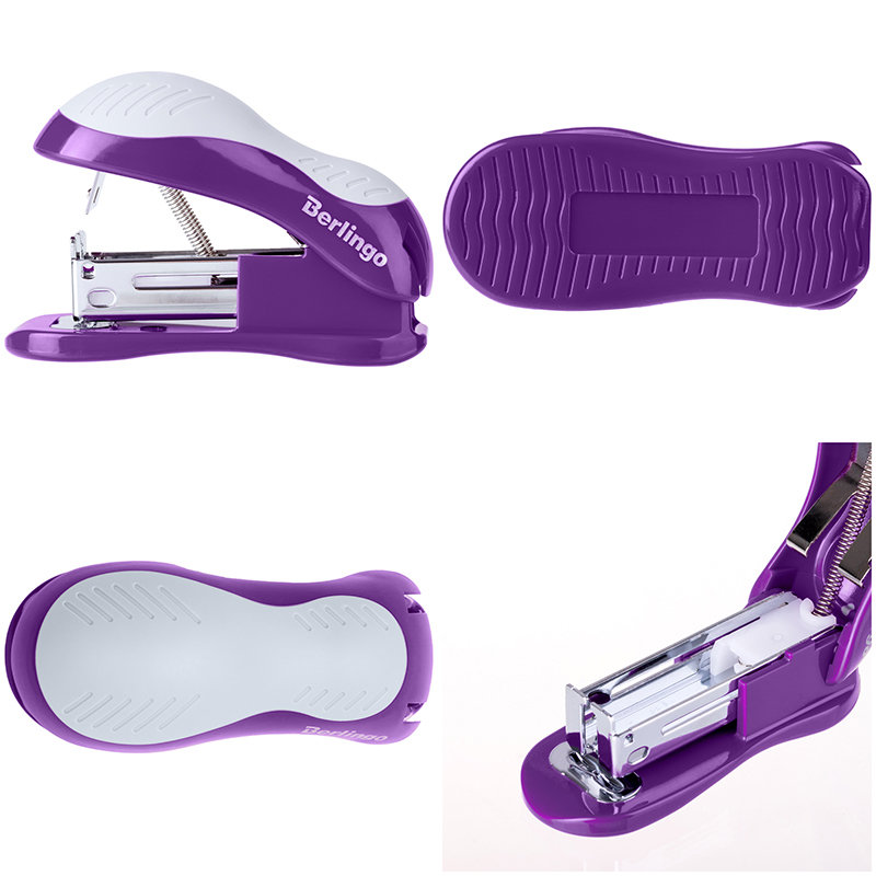 Мини-степлеры Berlingo "Office Soft" имеют пластиковый корпус эргономичной формы, металлический механизм и мягкую антискользящую резиновую вставку, что обеспечивает комфортную работу степлера.
