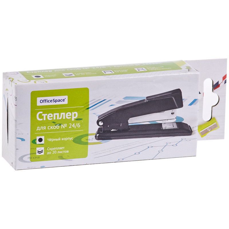 Степлер металлический №24, черный, пробивная мощность - 20 листов
