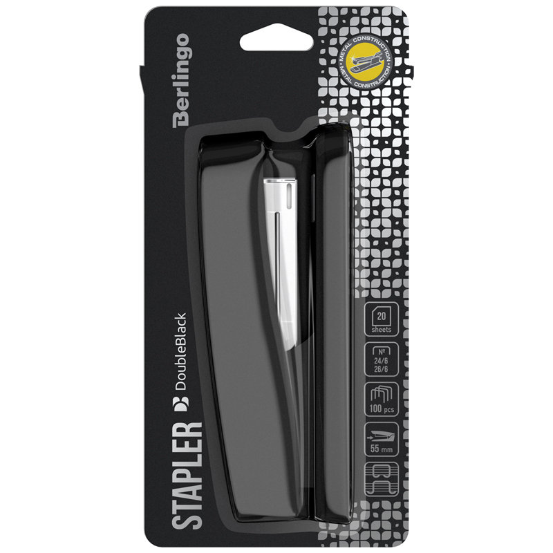 Степлер Berlingo "DoubleBlack" отличается от других моделей необычным дизайном, напечатанным на верхней крышке корпуса. Данный степлер прекрасно подходит для ежедневного использования.