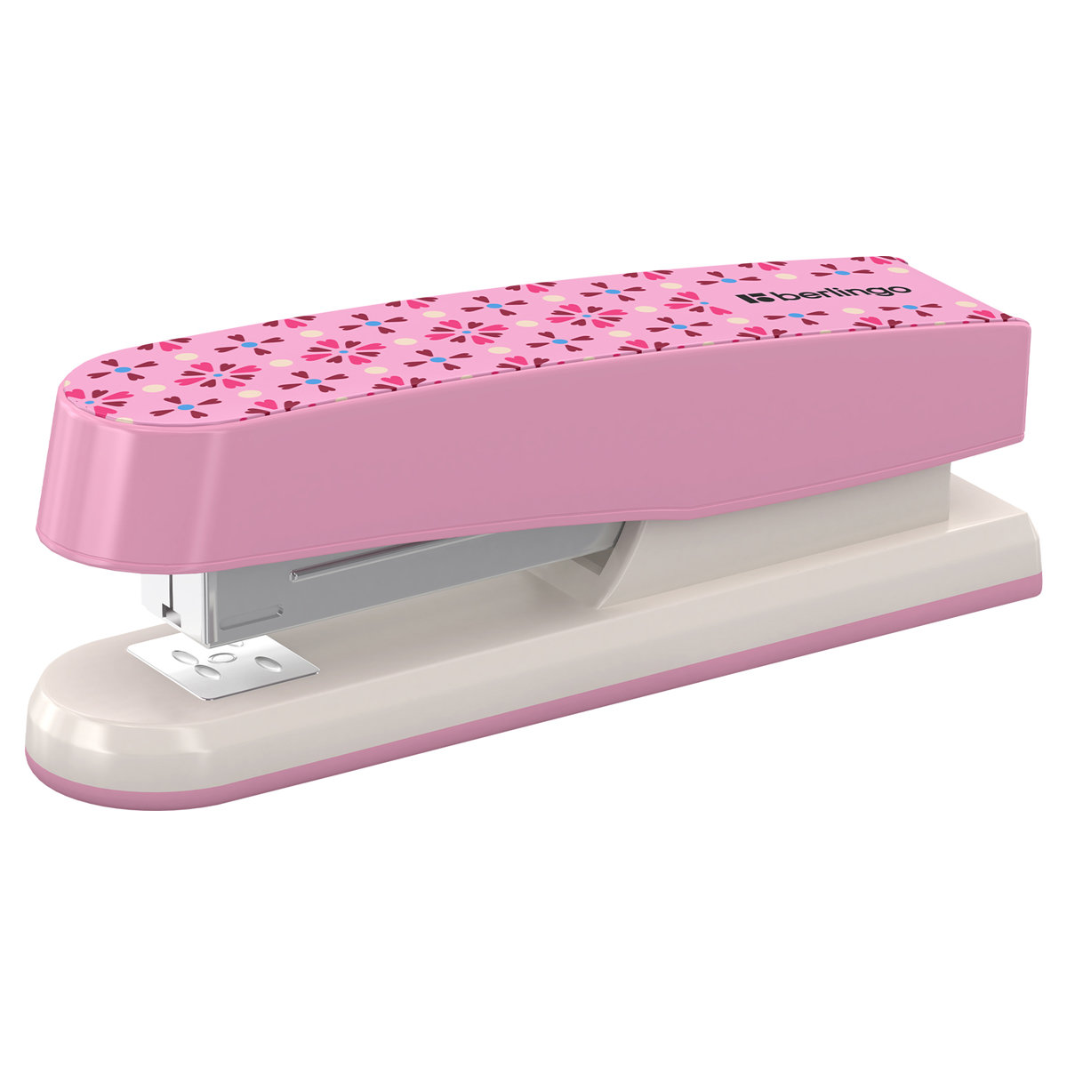 Степлер Berlingo "Silk Touch" отличается от других моделей необычным дизайном, напечатанным на верхней крышке корпуса, и нежными пастельными цветами. Данный степлер подходит для ежедневного использования.