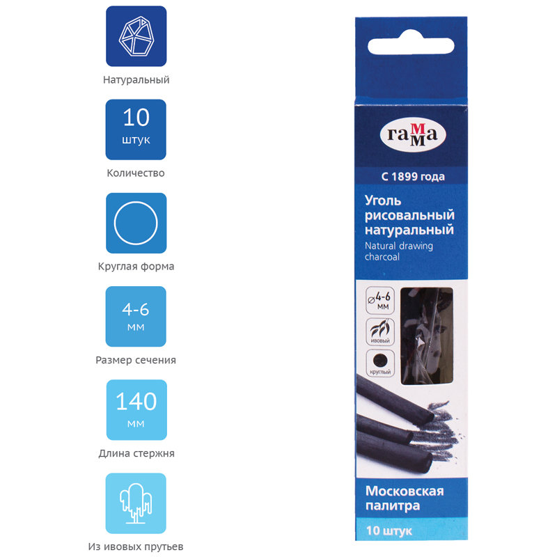Натуральный ивовый уголь для рисования предназначен для графики, выполнения набросков, зарисовок.