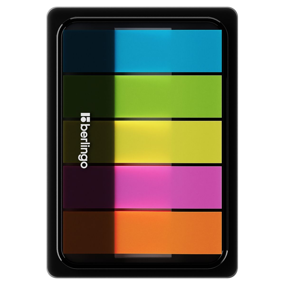 Самоклеящиеся пластиковые полупрозрачные флажки-закладки ярких неоновых цветов, упакованные в пластиковый диспенсер.